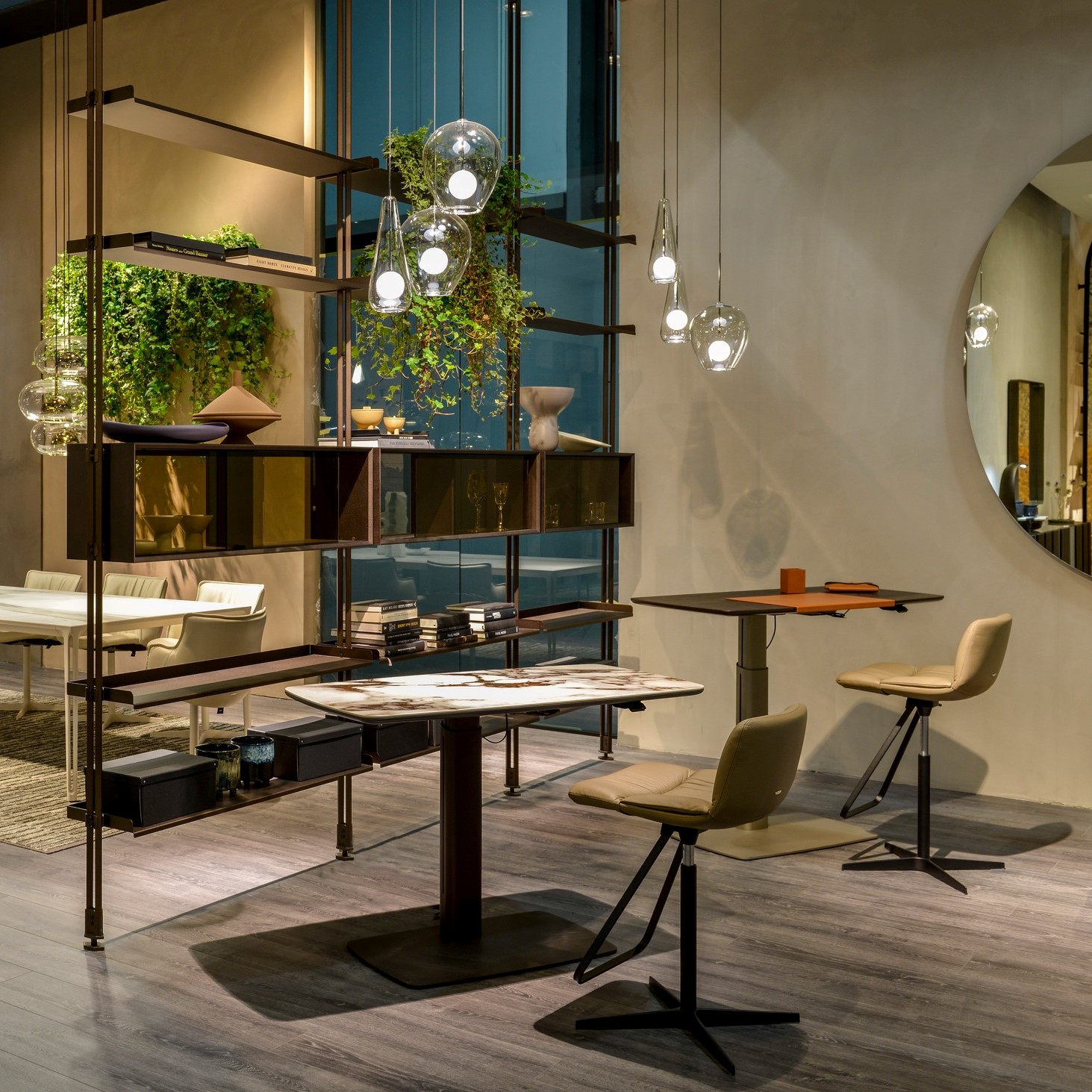 Run Keramik è una scrivania realizzata con materiali di alta qualità . La struttura è in acciaio verniciato goffrato titanio o bronzo. Il piano è in ceramica ed i marmi sono disponibili in diverse colorazioni.